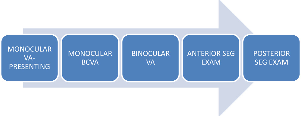 Visual acuity both with and without glasses was checked using Snellen charts at 6 meter distance,  refraction was done, the presenting visual acuity (Snellen), BCVA& causes for decreased vision were noted. Any previous history of glasses, compliance with previously prescribed glasses, squint, eye surgeries, relevant medical history, trauma etc. was recorded. Glasses were prescribed to those who needed. Anterior segment examination with a hand held slit lamp and fundus examination was done with a direct ophthalmoscope in patients where vision improvement was not noted with glasses, dilated examination was done whenever possible.