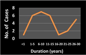 The findings in our study have shown that most cases of IOL dislocation occurred within 6-10 years after cataract surgery & also after 20years of primary cataract surgery. Mean duration for IOL dislocation was 12.5 years.