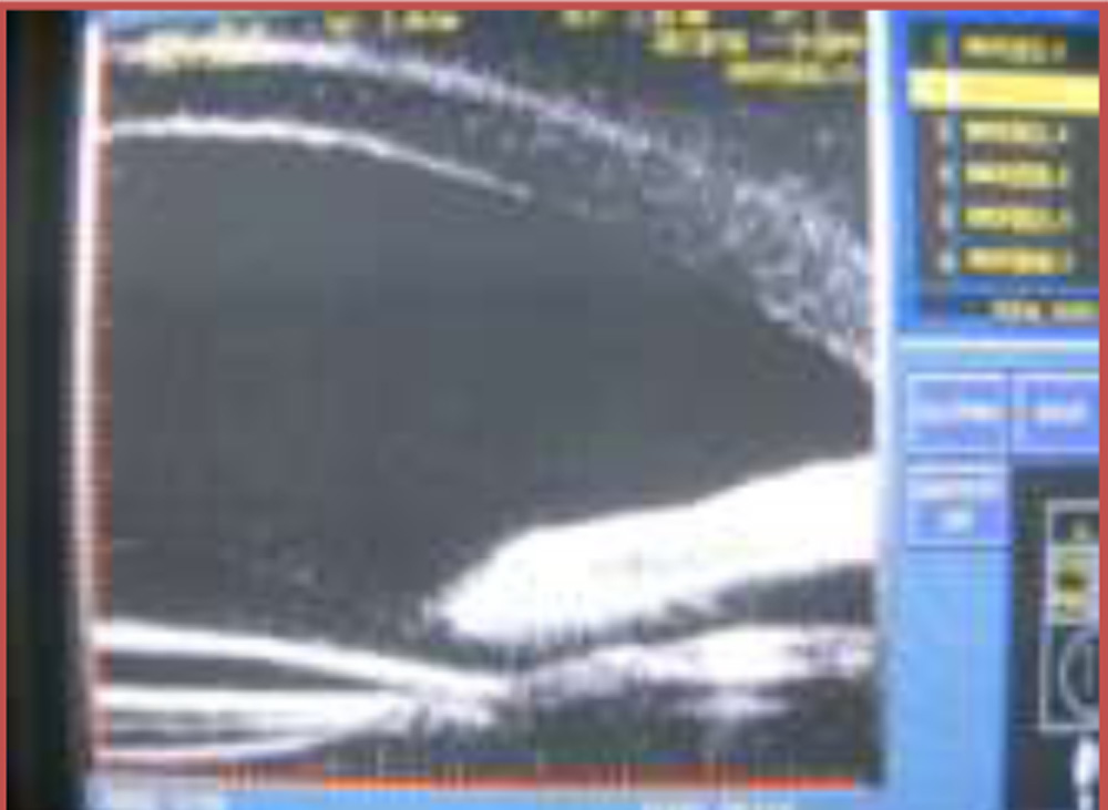 Ultrasound biomicroscopy (UBM) is a high resolution ultrasound technique used for imaging of structural details of anterior segment at near microscopic resolution. It provides for detailed 2-D gray scale images of conjunctiva, cornea and anterior sclera, anterior chamber and angle structures, ciliarybody, crystalline lens, zonules, capsular remnants and anterior vitreous. The frequency of UBM used is 50MHz whereas conventional ultrasound is 7.5-10 MHz. providing cross sectional images of anterior segment structures. The detailed images give a lateral resolution of 59 µ , axial resolution of 25µ and depth of penetration of 4-5mm(upto pars plana).