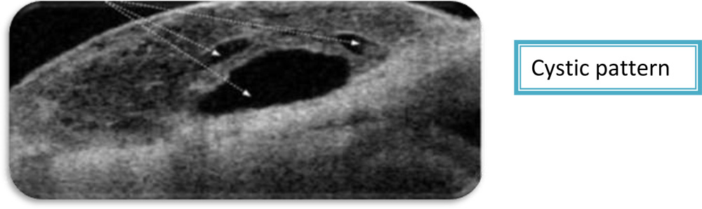 In multiform reflective wall there was presence of small multiple fluid filled spaces seen as hyporeflective areas in the conjunctiva or bleb wall.