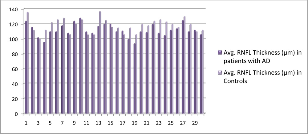 Figure 2: Avg. RNFL Thickness (µm) in patients with AD