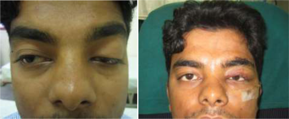 Figure 1: (Left) Preoperative appearance of a 28-year-old patient with left severeblepharoptosis