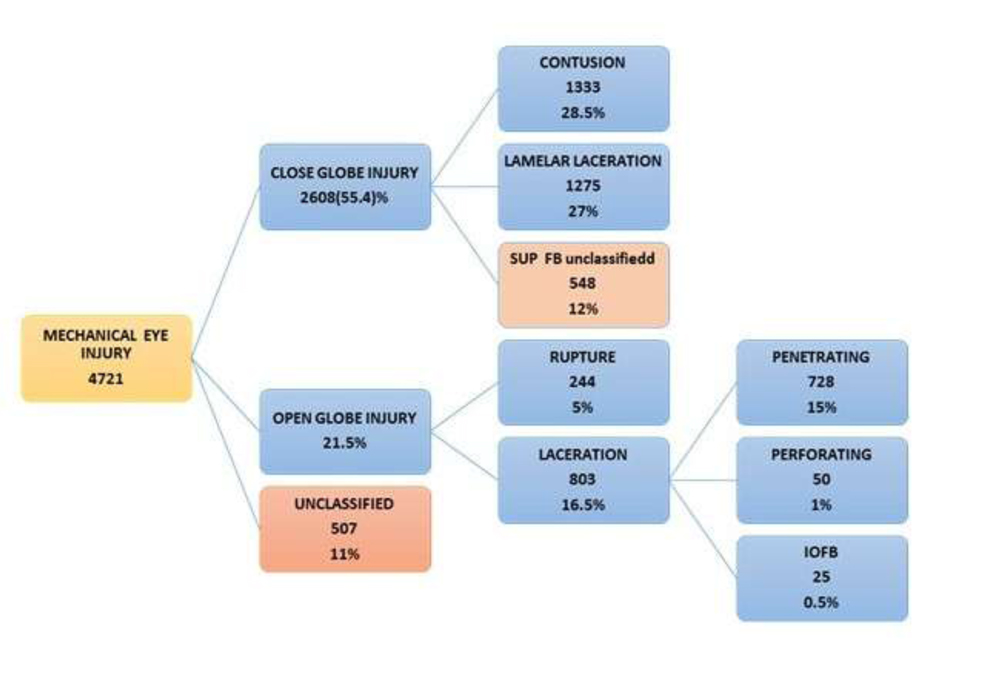 Participants: 4271 eyes of 4200 mechanical eye injury patients from Tertiary Eye Care Centre, Western Central India.