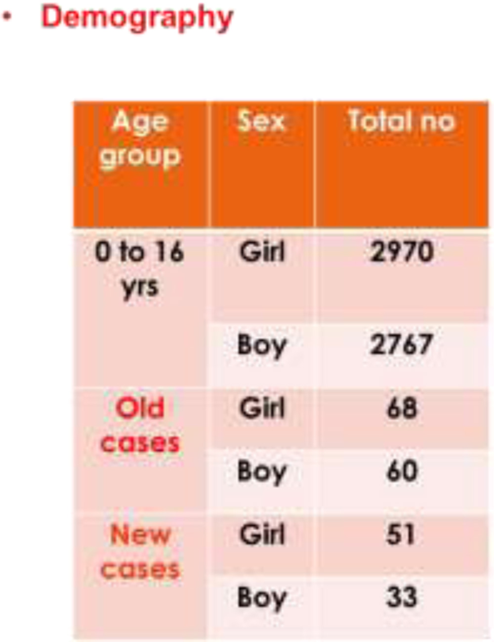 Table 1 shows demographic patterns children of the villagers.