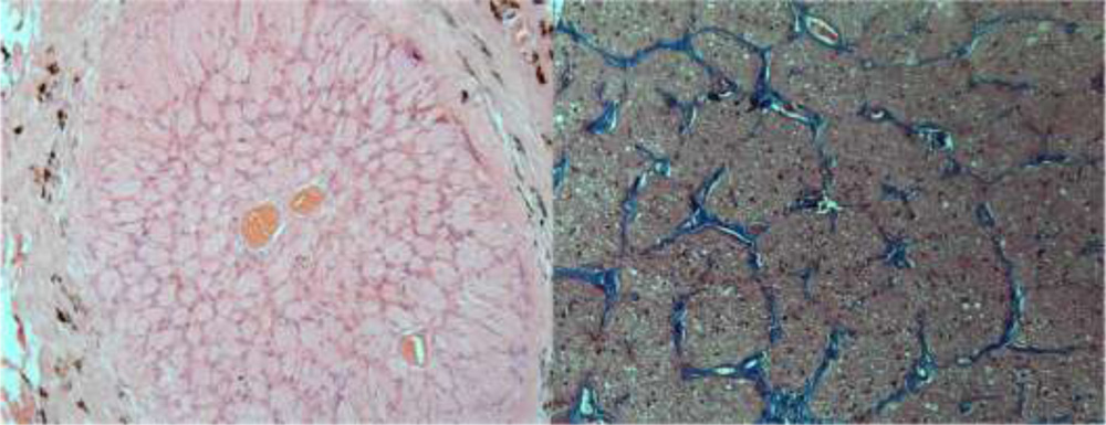 Figure 2: H&E and Masson trichrome stain with septas and inter-septal blood vessels (20x, 40 x)