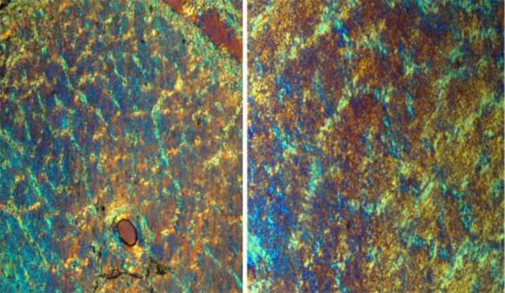 Some of the optic nerve sections were seen in unstained sections under the polarizer [Figure 3]. Special stains such as Masson’s trichrome was done to see the collagen septas containing the nerve bundles. The mapping of optic nerve was documented in diffraction photography, using polarizer and different objective of ZEISS Axioskop 40 with AxioCam MRc camera. Some of these images were rendered in gray scale and the white images on the dark background were adjusted to enhance the contrast. The images were analyzed uniformly based on magnifications.