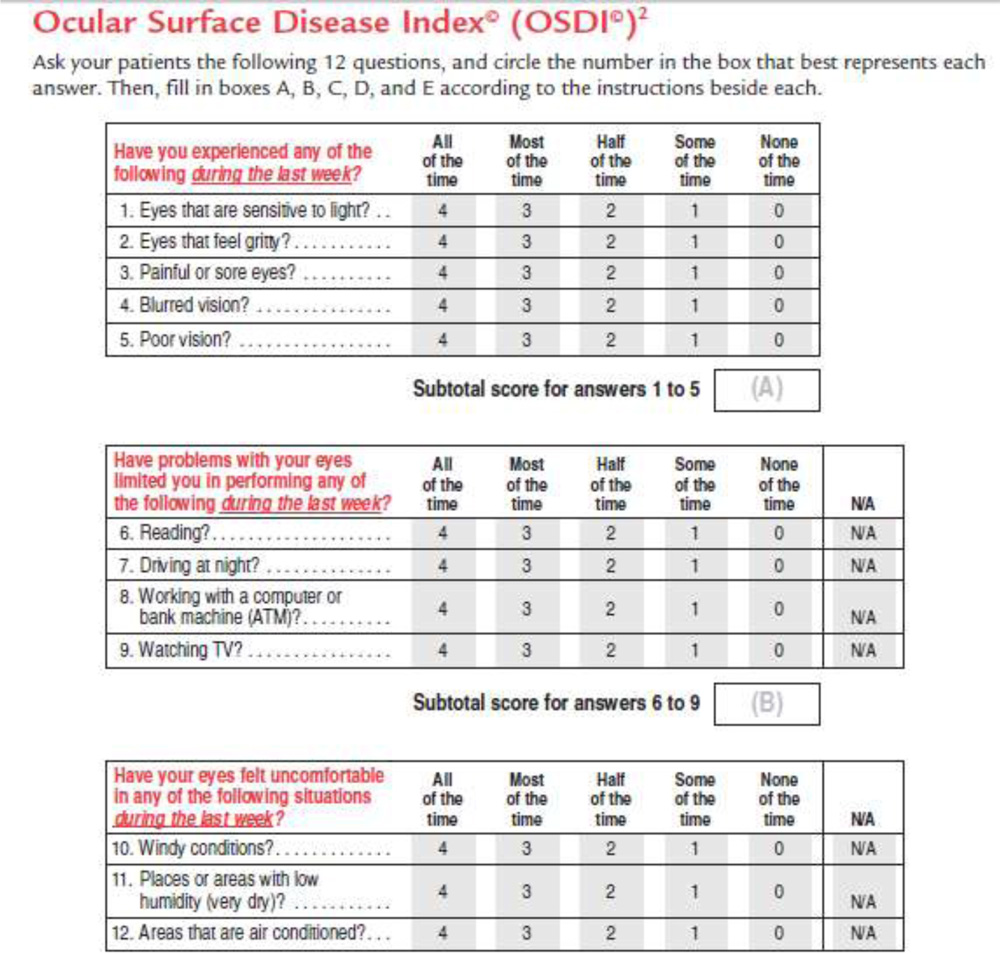 • Ocular Surface Disease Index (OSDI) questionnaire