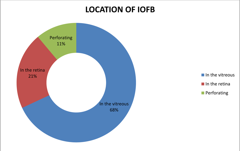 • The incidence of infectious endophthalmitis after retainingan IOFB has been reported to be 0–13.5%.2 We had 18 cases of endophthalmitis associated with IOFB in our series (2%).