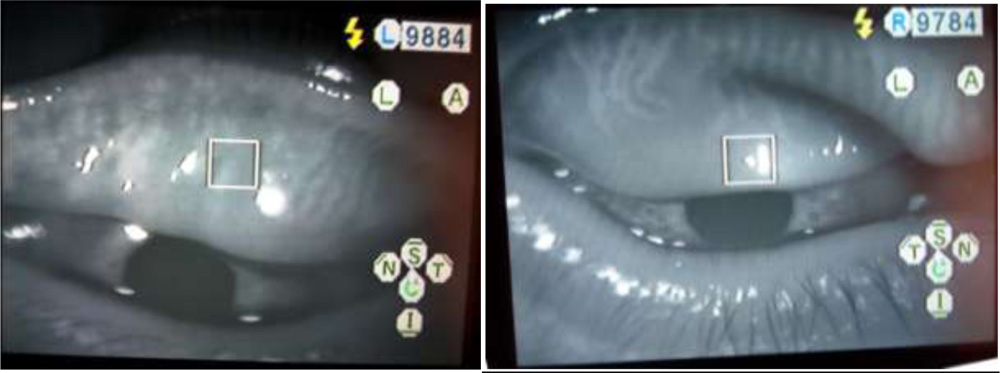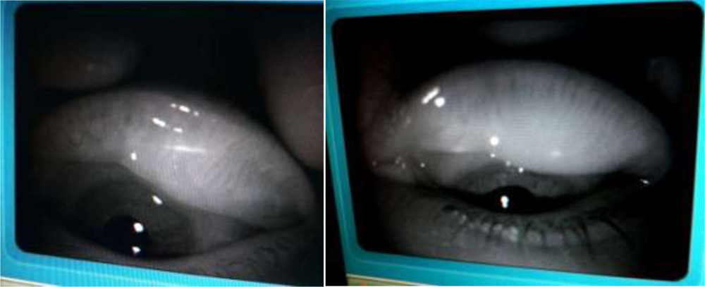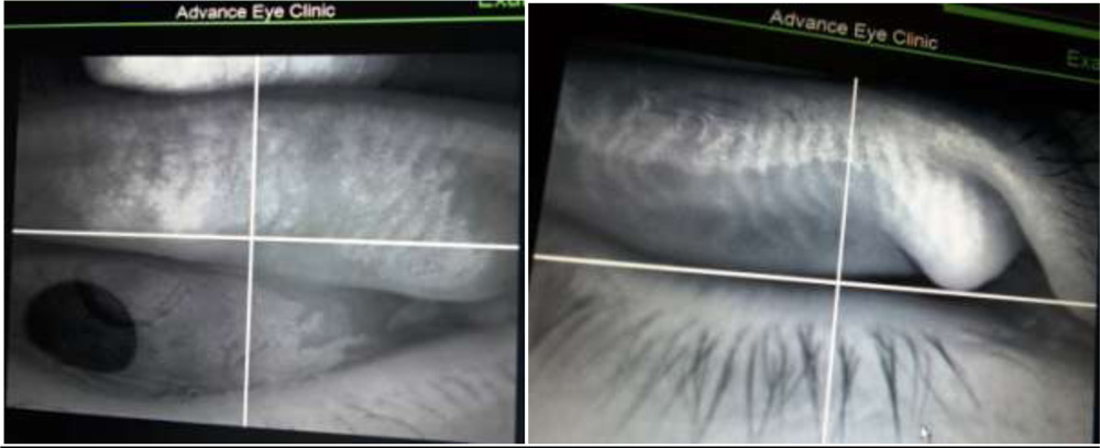 Meibography is a technique that yields information on the morphological characteristics of meibomian glands by observing their silhouette through retroillumination of the everted eyelids from the skin side. The conventional meibography done is by shining torch through lid and examining the MGs after everting the lids. This needs physical contact of the torch to the eyelids. While conventional meibography is difficult to apply to the upper eyelid, non-contact meibography allows for observation of a wide area encompassing both the lower and upper eyelids. Instruments offering non-contact meibography are now available in the market in some regions of the world. One is the TOPCON BG-4M for slit lamp, which is an IR illumination system with an external IR CCD. The Meibom Pen is a mobile pen-shaped meibography device  ( Japan Focus Corporation, Tokyo, Japan), and others include the Eye Top Topographer, Sirius Scheimpflug Camera and Cobra Fundus Camera (CSO and bon Optic VerttiebsgmbH) and the OCULUS Keratograph 5M (Oculus, Wetzlar, Germany). These instruments no doubt give  excellent photographic images of the morphological features of meibomian glands; all eye hospital or clinics may not afford these expensive setup. Especially, in developing nation like India, a simple cost effective yet efficient day today OPD instrument would be handy if we can capture the morphologic features of MGs which will aid us in the better management of MGD. Hence, in that approach, we found that infra red camera of  any simple OPD instruments like auto-refractometer, non contact tonometer, IOL master, fundus camera, specular microscope, and corneal topographer which is easily available in almost all eye clinics or hospitals can be utilized for the same. This is first of its kind as per our knowledge and we tried capturing the images from the upper and lower lids after everting them and found them good enough to be used for routine meibography.