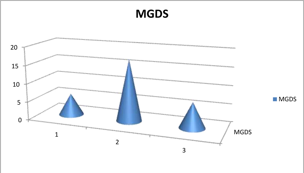 On visualizing the MGs, we noted the gland drop outs and graded them. The MGDS (Meibomian gland drop out score) showed grade 2 accounting the maximum with 17 eyes (56.7%) followed by grade 1 and grade 2 almost at same level(6 and 7 eyes respectively). So we found that most of our analyzed eyes had MG dropout more than 1/3rd area of MG but less than 2/3rd noted on the infra red imaging as shown in table no.7.