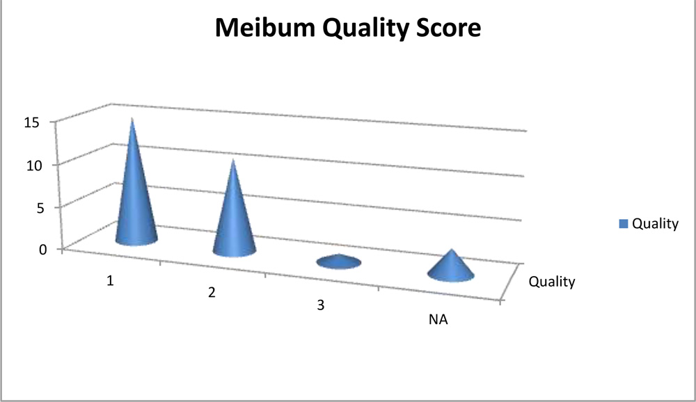 Tear film height was assessed on slit lamp and found that 21(70%) eyes having 0.25mm and 9(30%) eyes had 0.5mm. Non invasive tear film up time (TBUT) was noted and found that all 30 eyes had TBUT less than 10seconds, with 25 eyes (83.3%) having less than 5s and 5 eyes (16.7%) having TBUT between 6 and 10s.Schirmer’s Test Type 1 (without proparacain) done and was found to have mean value of 13.96mm (range-0-35mm) and Schirmer’s Test Type 2 (with proparacaine) had mean value of 13.93mm (range-0-35mm). No difference in the values has been noted between the two types per se. The meibum expressibility score was assessed and found that 3 eyes had score 3(no secretions expressed) and the maximum (14 eyes-46.7%) eyes had score 2, followed by score 1(9 eyes-30%). 4 eyes had score 0, accounting for all gland being expressible as shown in table 5. That means we found that almost 90% eyes had some expressible meibum.
