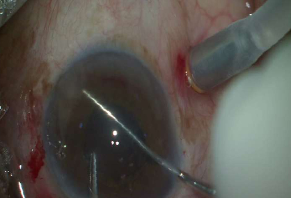 Fig 1- Iris Claw lens being enclaved using a Sinskey hook