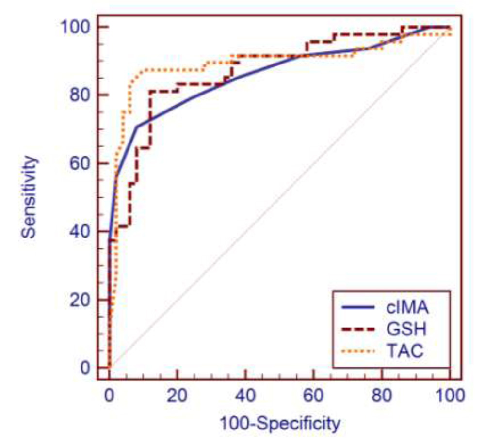 MEDCALC; ANOVA, Correlations and ROC were used for statistical analysis. P-value of ≤0.05 was considered significant.